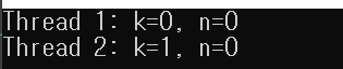 이와 반대로 다음 표와 같이 증가 연산을 수행하는 스레드가 시작하기 전에 감소연산을 수행하는 스레드가 작업을 모두 마쳐서 최종 결과는 1이 됩니다.