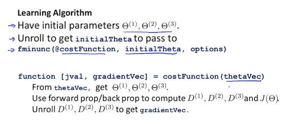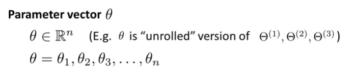 더 이상 \(\Theta\)는 vector가 아니고, octave 등에서 사용하기 위해서는 Unroll 과정이 필요하다.