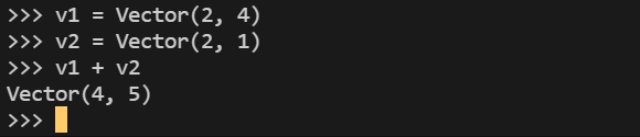 구현된 Vector는 다음과 같이 생성하고, 벡터 덧셈을 할 수 있어야 합니다.