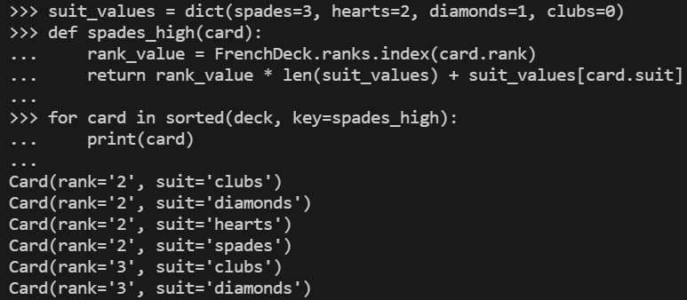 suit_values = dict(spades=3, hearts=2, diamonds=1, clubs=0)