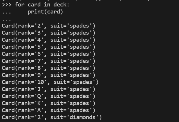 Card = collections.namedtuple('Card', ['rank', 'suit'])