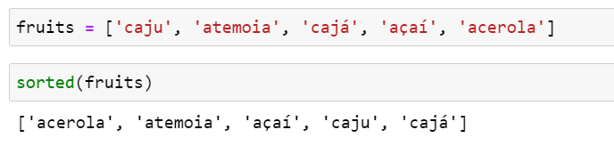 아래는 브라질 과일 목록을 정렬하는 예제 코드입니다.