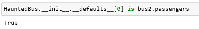 마지막으로 다음 문장을 실행하면 bus2.passengers가 HauntedBus.__init__.__defaults__ 속성의 첫 번째 항목에 바인딩된 별명임을 확인할 수 있습니다.
