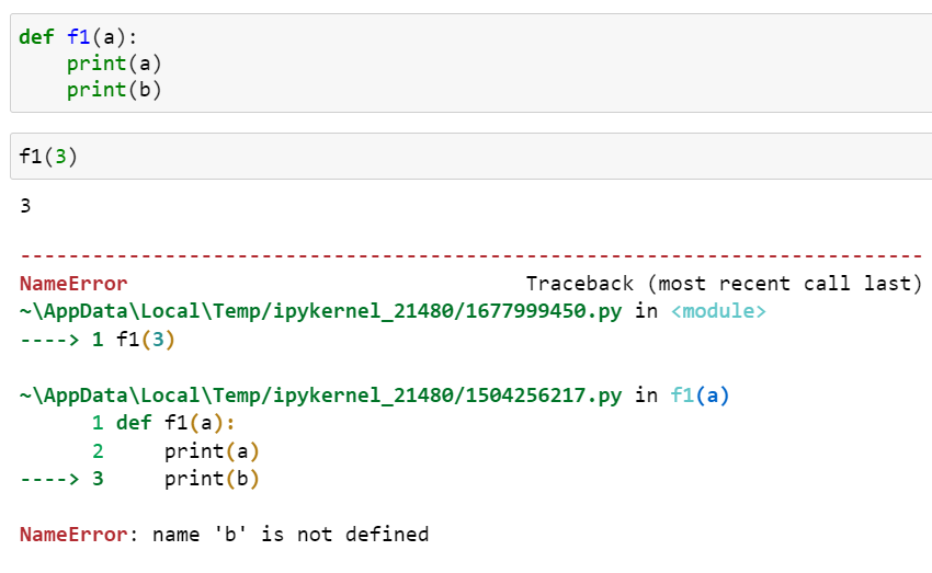 예상한 대로 에러가 발생합니다. 그런데 전역 변수 b에 값을 할당하고 f1()을 호출하면 다음과 같이 제대로 동작합니다.