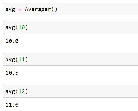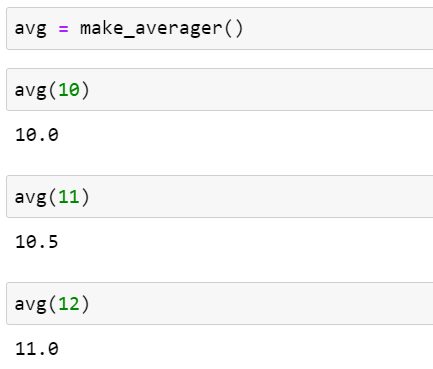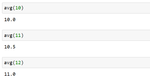 처음 avg()를 실행한 후 반복 실행하면 다음과 같은 결과를 출력해야 합니다.