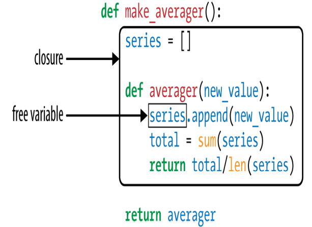 실제로 클로저는 함수 본체에서 정의하지 않고 참조하는 비전역(nonglobal) 변수를 포함한 확장된 scope를 가진 함수입니다. 함수가 익명 함수인지는 중요하지 않습니다. 함수 본체 외부에 정의된 비전역 변수에 접근할 수 있다는 것이 중요합니다.