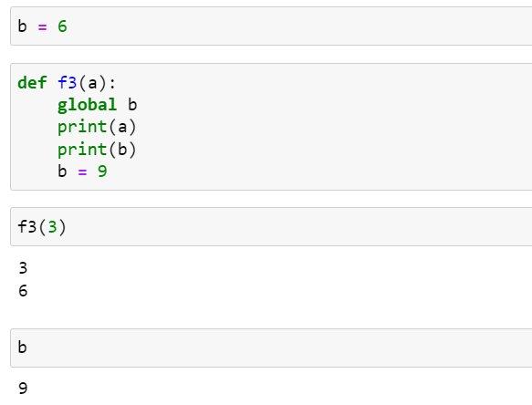 만약 인터프리터가 b를 전역 변수로 처리하기를 원한다면 다음과 같이 global 키워드를 이용해서 선언해야 합니다.