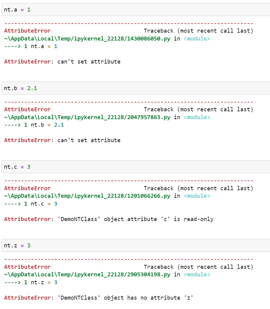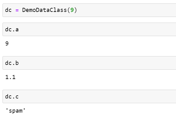 또한, 초기화도 가능합니다. typeing.NamedTuple 또는 @classdata 선언에서 이 값은 생성자를 호출할 때 대응되는 인수를 생략하면 해당 속성의 기본값이 됩니다.