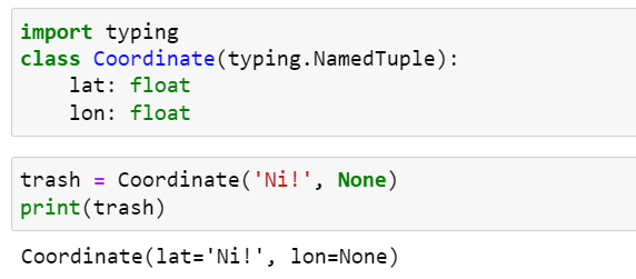 위에서 기본 필드를 가진 Coordinate 클래스는 typing.NamedTuple을 사용하여 다음과 같이 작성할 수 있습니다.