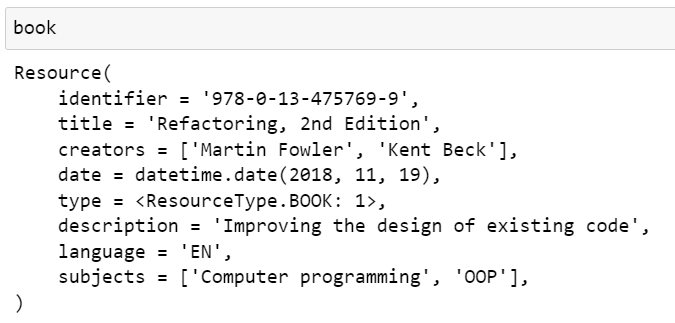 type: ResourceType = ResourceType.BOOK # The field default is ResourceType.BOOK