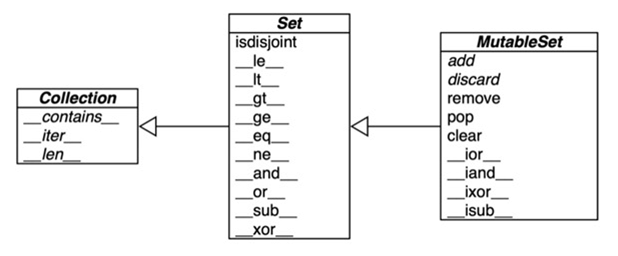 아래 그림은 collections.abc에 정의된 17개의 ABCs에 대한 UML 클래스 다이어그램을 간략하게 보여줍니다.