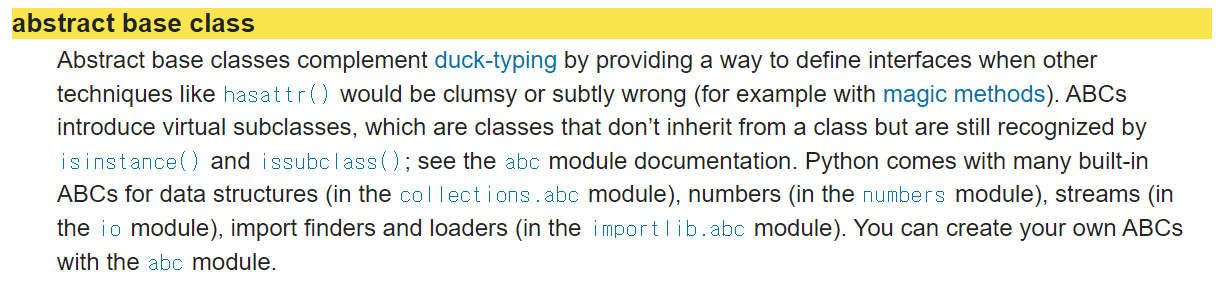 파이썬 용어사전에서 abstract base class는 다음과 같이 설명하고 있습니다.