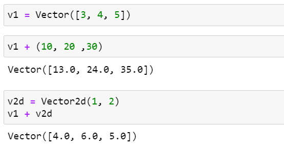 예전 포스팅에서 구현한 기본 Vector 클래스는 간단한 연산자를 구현하고 있습니다. __add__()와 __mul__() 메소드는 스페셜 메소드가 연산자 오버로딩을 지원하는 방법을 보여주기 위해 작성되었지만, 여기에는 간과된 미묘한 문제가 있습니다.