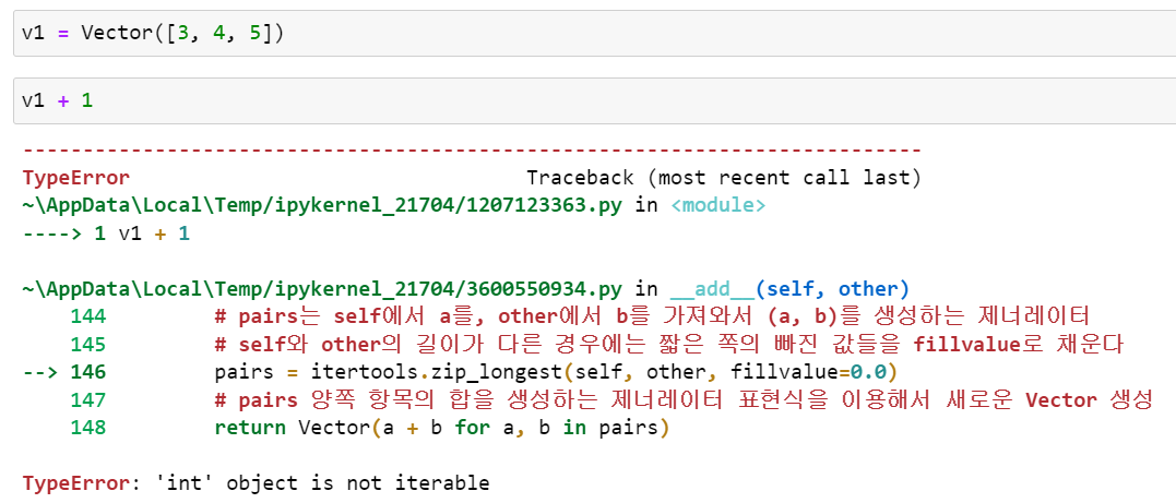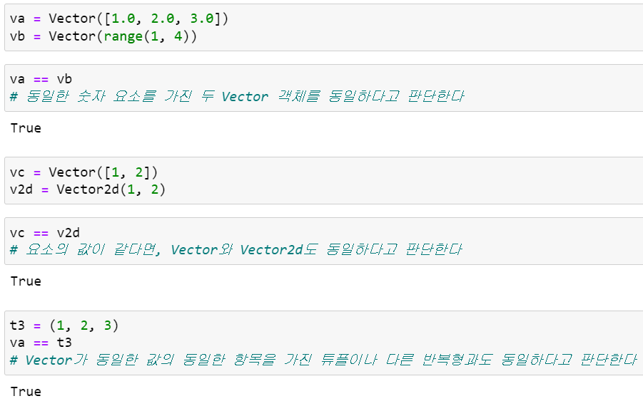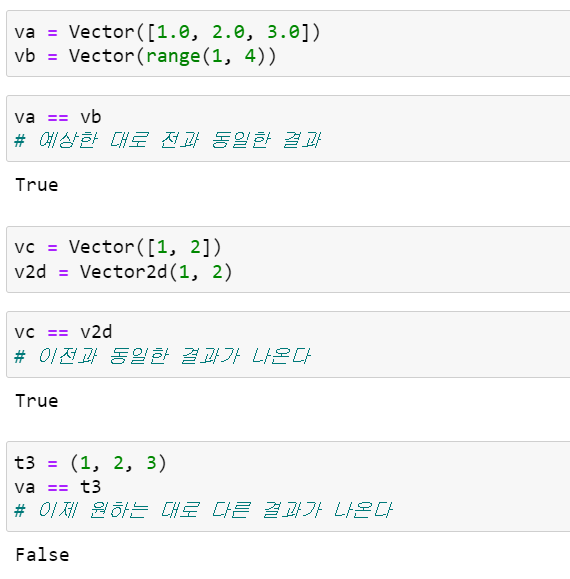 그리고, 위의 Vector2d 클래스에 Vector2d.__eq__() 메소드가 Vector2d(3, 4) == [3, 4]를 True라고 판단합니다. 이러한 문제들도 이번 포스팅에서 다루어보도록 하겠습니다.