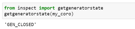 위에서 실행이 종료된 my_coro의 상태를 확인하면 다음과 같습니다.