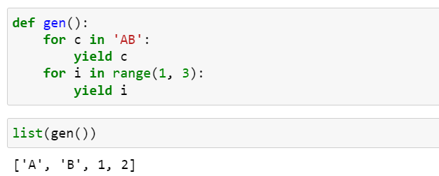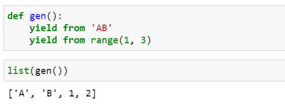 - Sub Generator가 실행을 마친 후 발생한 StopIteration 예외의 첫 번째 인수가 yield from 표현식의 값이 된다.