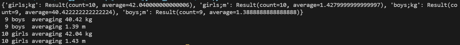 # grouper()는 또 다른 averager() 객체를 생성해서 다음 값을 받는다