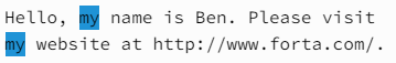 'my'도 'Ben'과 마찬가지로 정적 텍스트(static text)지만, 이번에는 예문에서 2개의 일치하는 결과가 발생했습니다.