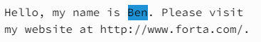 그럼 먼저 위의 예문에서 정규표현식 'Ben'으로 검색한 결과는 다음과 같습니다.