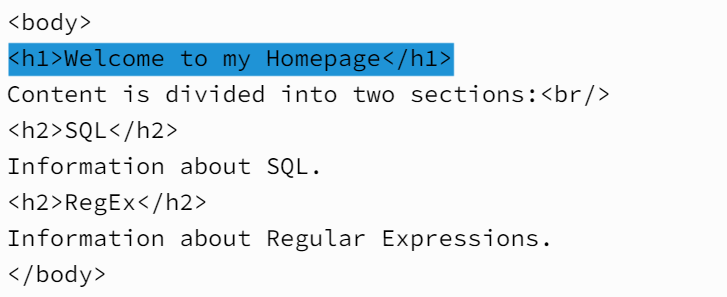 <h1>Welcome to my Homepage</h1>