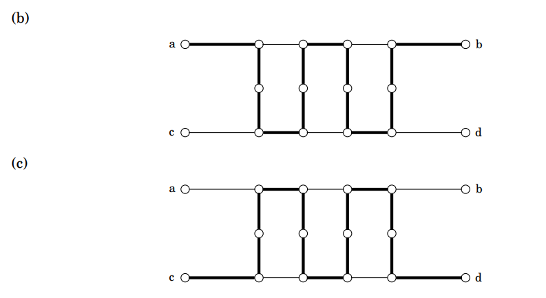 그러나 이 성질은 매우 중요한 것을 말해줍니다. 위에서 보인 구조(가젯이라고 함)가 간선 쌍이 주어진 루드라타 순회 문제에서 {a, b}와 {c. d}가 쌍을 이룬 것과 동일하다는 것을 말합니다(아래 그림 (d) 참조).