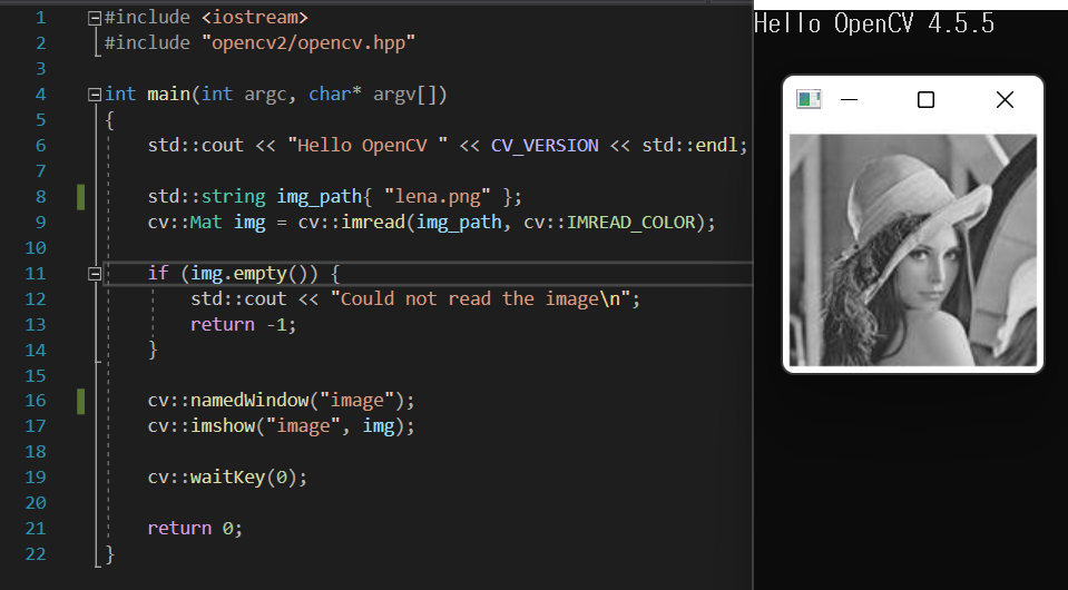 제가 설치한 OpenCV 버전은 4.5.5이기 때문에 아래와 같이 출력하게 됩니다.