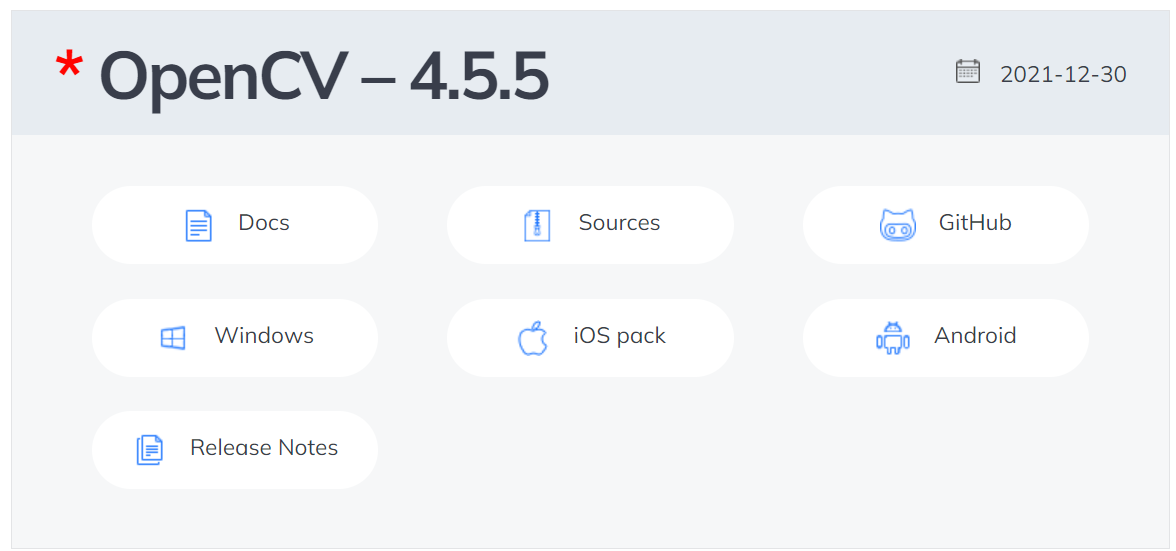 설치 파일은 위 사이트에서 내려받을 수 있습니다. 설치파일을 사용하면 직접 빌드하여 설치하는 것보다 빠르고 간단하지만 OpenCV의 추가 모듈을 사용할 수 없고 64비트 OS만 지원한다는 단점이 있습니다.