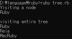 ruby_tree = Tree.new("Ruby", [Tree.new("Reia"), Tree.new("MacRuby")])