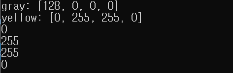 Scalar는 보통 4개 이하의 채널을 갖는 영상의 픽셀 값을 표현하는 용도로 많이 사용됩니다. grayscale인 경우 첫 번째 원소가 픽셀 밝기를 표현하고 나머지 3개의 원소는 0으로 설정됩니다. truecolor의 경우에는 처음 3개의 원소가 BGR 색상 성분을 표현하고 네 번째 원소는 보통 0으로 설정됩니다. 간혹 PNG 파일 형식처럼 투명도를 표현하는 알파 채널이 있는 경우, 네 번째 원소를 이용하기도 합니다.