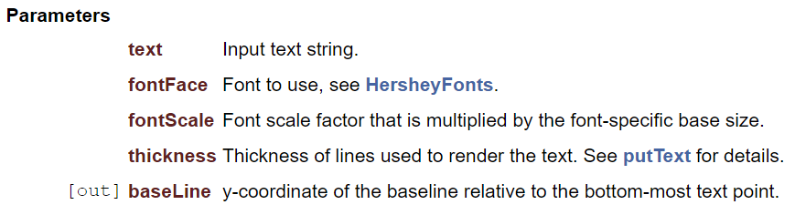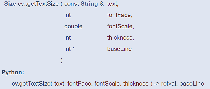 cv::Size sizeText = cv::getTextSize(text, fontFace, fontScale, thinkness, 0);