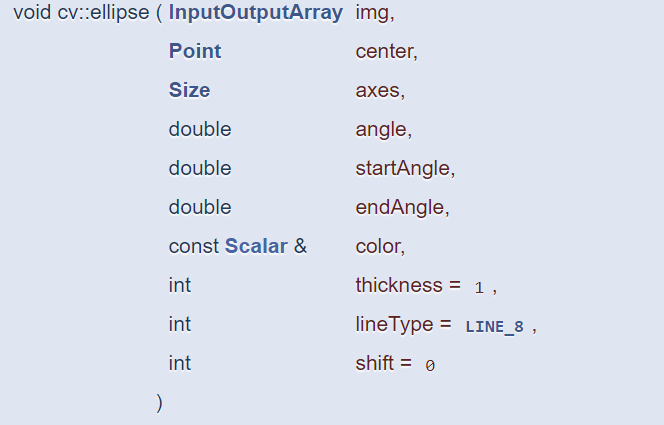OpenCV에서 타원을 그리고 싶을 때에는 ellipse() 함수를 사용할 수 있습니다.