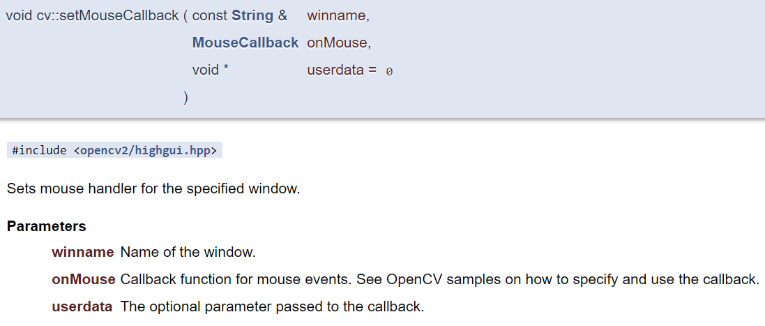 typedef void (*MouseCallback)(int event, int x, int y, int flags, void* userdata);