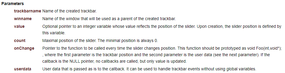 typedef void (*TrackbarCallback)(int pos, void* userdata);