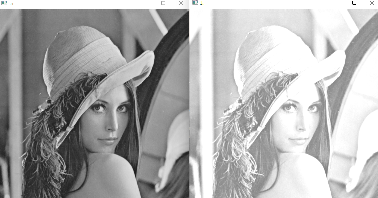 dst.at<uchar>(r, c) = src.at<uchar>(r, c) + 100;