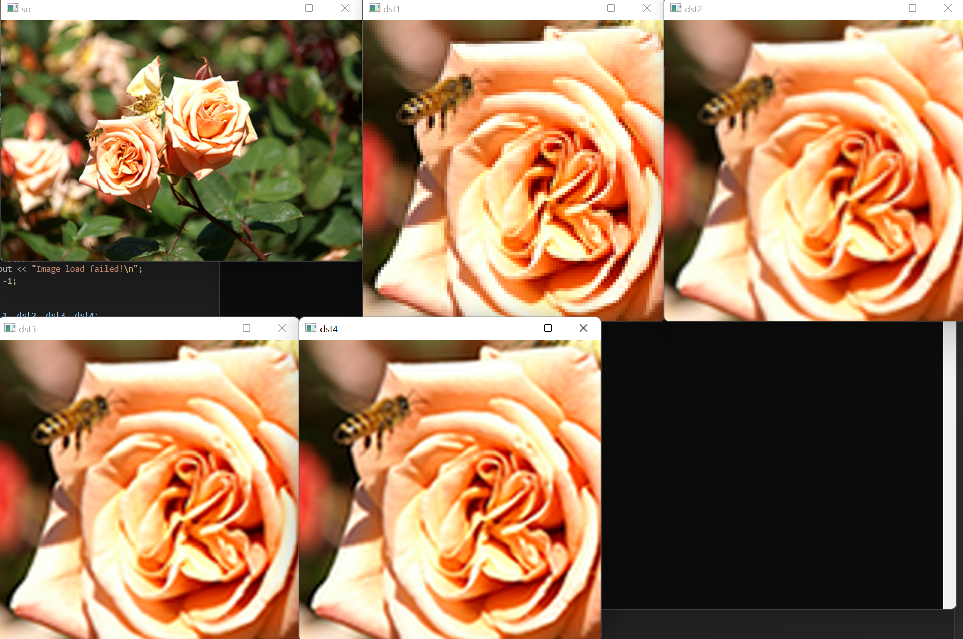 cv::resize(src, dst1, cv::Size(), 4, 4, cv::INTER_NEAREST);
