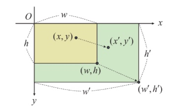 영상의 크기 변환을 그림으로 표현하면 다음과 같습니다.