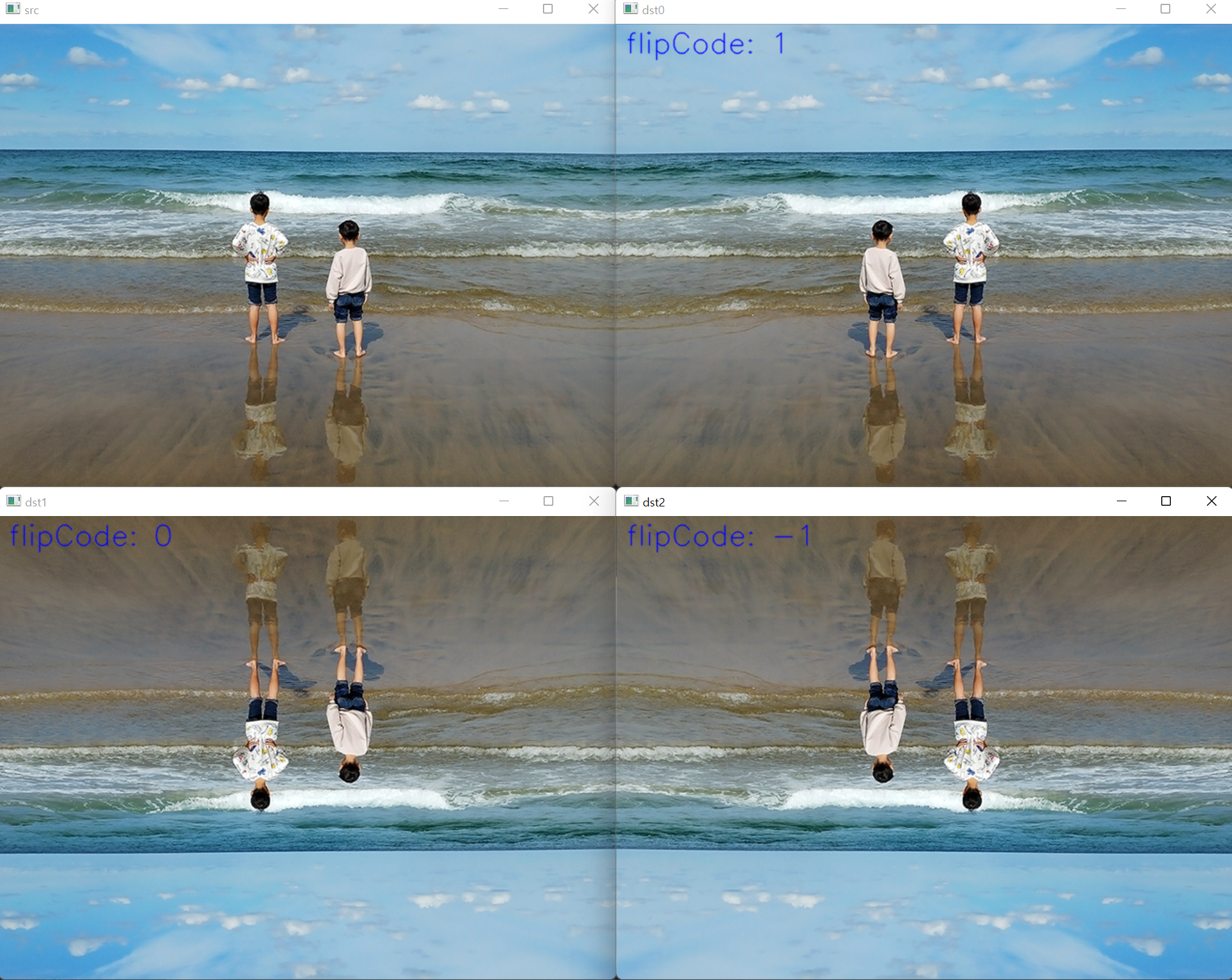 cv::flip(src, dst, flipCode[i]);