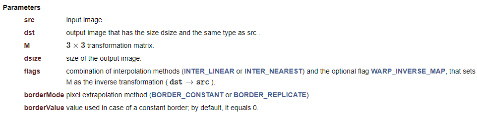 이 행렬을 구하고 나면, warpPerspective() 함수를 통해 투시 변환을 수행할 수 있습니다.