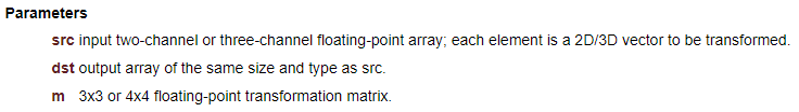 참고로 3x3 투시 변환 행렬이 있을 때, 일부 점들의 투시 변환 결과를 알고 싶다면 perspectiveTransform() 함수를 사용하면 됩니다.
