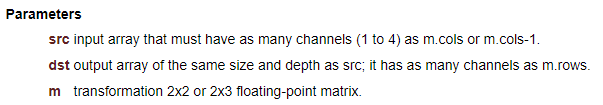 cv::transform(src, dst, M);
