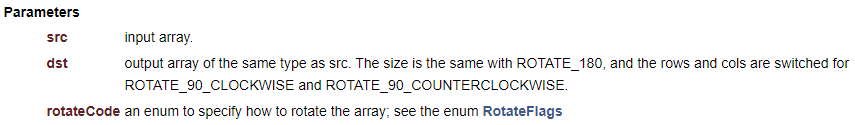 그리고 OpenCV에서 영상을 90도 단위로 회전하고 싶은 경우에는 rotate() 함수를 사용할 수 있습니다.