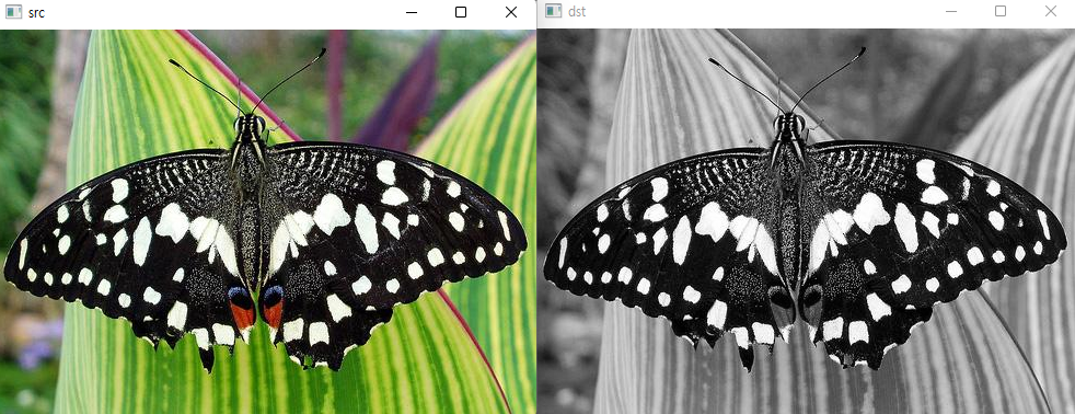 cv::cvtColor(src, dst, cv::COLOR_BGR2GRAY);