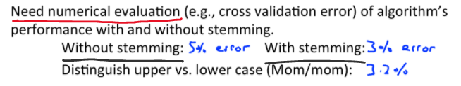 하지만, Stemming이 있건 없건 Numerical Evaluation(e.g., corrs validation error) 알고리즘은 중요하다.
