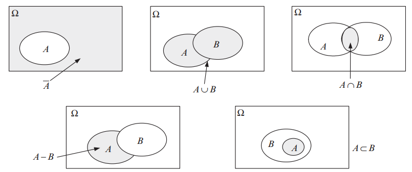 - \(A - B = A\setminusB\): A는 발생하지만 B는 발생하지 않는(A but not B) 사건 (difference)