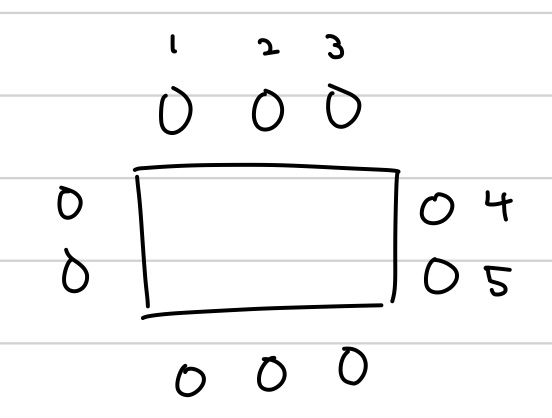 조금 더 문제를 복잡하게 만들면, 원이 아닌 직사각형에서의 순열을 구하는 문제가 있습니다.