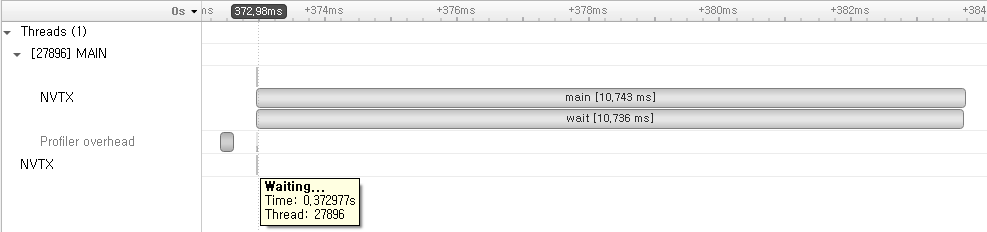 그리고 관심있는 부분에 Range Push/Pop을 추가하였습니다. 이를 통해서 우리는 관심있는 영역의 time span을 시각적으로 살펴볼 수 있습니다.