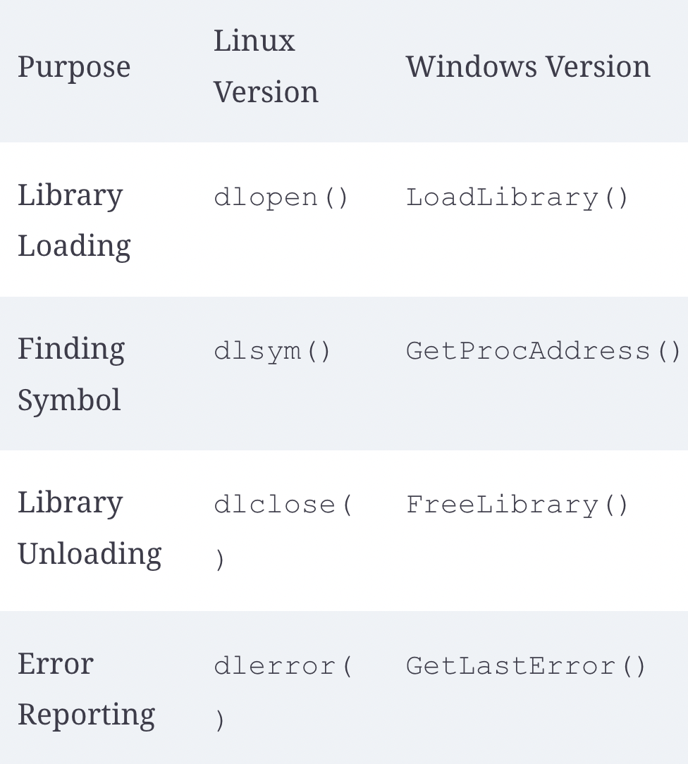 본질적으로 동적 라이브러리는 일반적으로 외부에 특정 기능을 제공하고, 이러한 방식은 내부 기능의 세부 사항에 대한 클라이언트의 개입을 최소화해야 합니다. 이를 달성하기 위한 방법은 인터페이스를 통하는 것입니다.