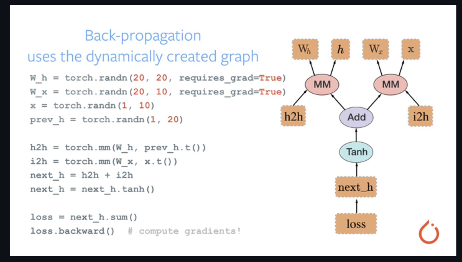 특히, 다른 프레임워크와는 다르게 동적으로 backward graph를 구성한다고 언급하고 있습니다.