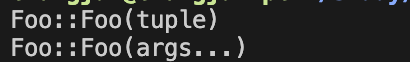 위의 코드의 결과처럼 첫 번째 인자로 piecewise_construct가 전달되었을 때만 tuple 자체가 아닌 tuple의 요소를 받는 Foo 클래스의 생성자를 사용합니다. 여기서는 가변 인자를 받는 생성자가 호출되었고, 만약 Foo(int, float)라는 생성자가 있었다면 이 생성자가 호출되었을 것입니다. 하지만 이렇게 동작하려면 두 인자가 모두 tuple이어야 하기 때문에 첫 번째 인자를 전달할 때 make_tuple(42)을 사용하여 int를 tuple로 변경하여 전달했습니다.