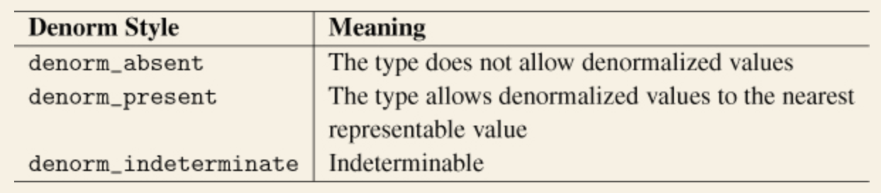 비정규화 스타일은 has_denorm 멤버로 제공되며, 가능한 값은 아래와 같습니다.